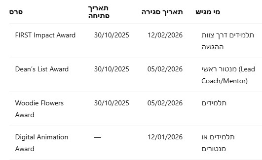 הגשת כל הפרסים דרך עמוד ה Awards בדשבורד העולמי של הקבוצה דרך אתר FIRSTINSPIRES