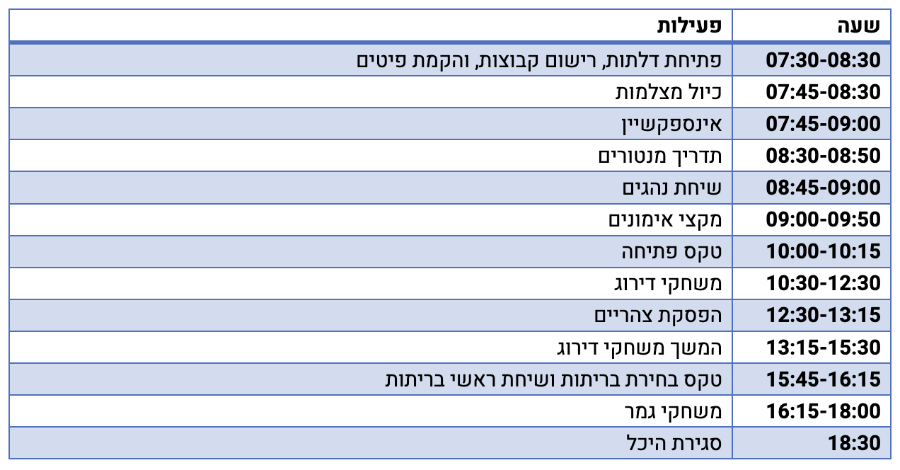 🔹 שימו לב - השנה הוקצה זמן ייעודי לכיול מצלמות במגרשים. אנא היערכו בהתאם על מנת למנוע עיכובים.